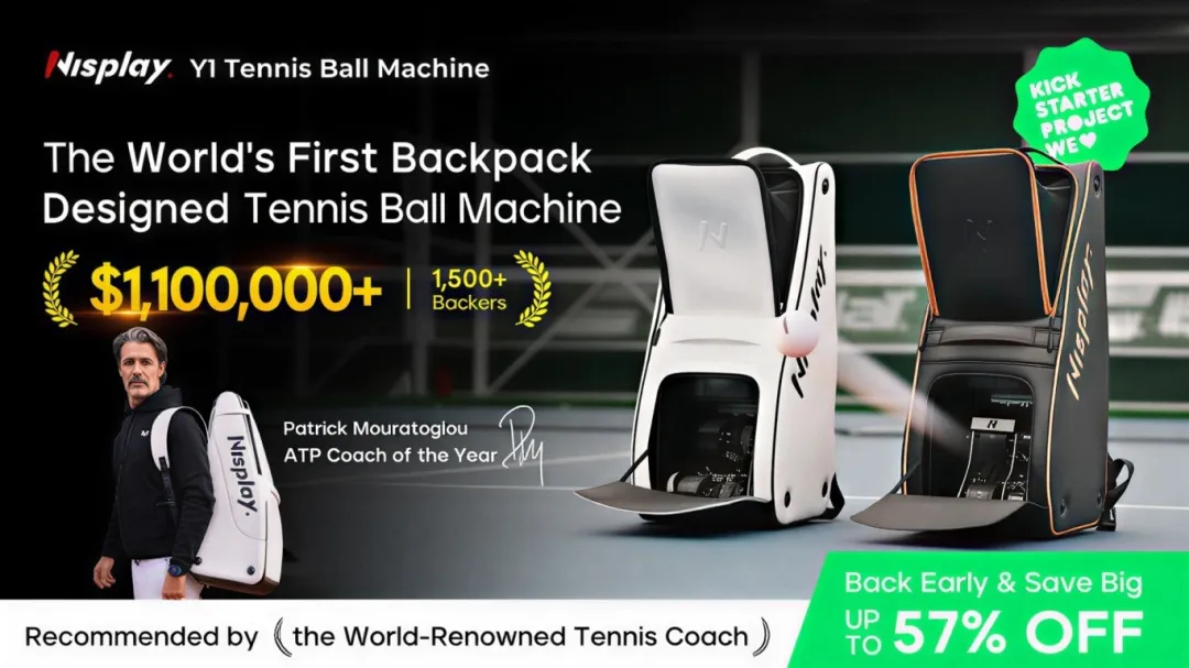 Nisplay Y1 是一款背包式网球发球机,采用模块化磁吸设计,总重约 7.5kg,可以直接背去球场训练。